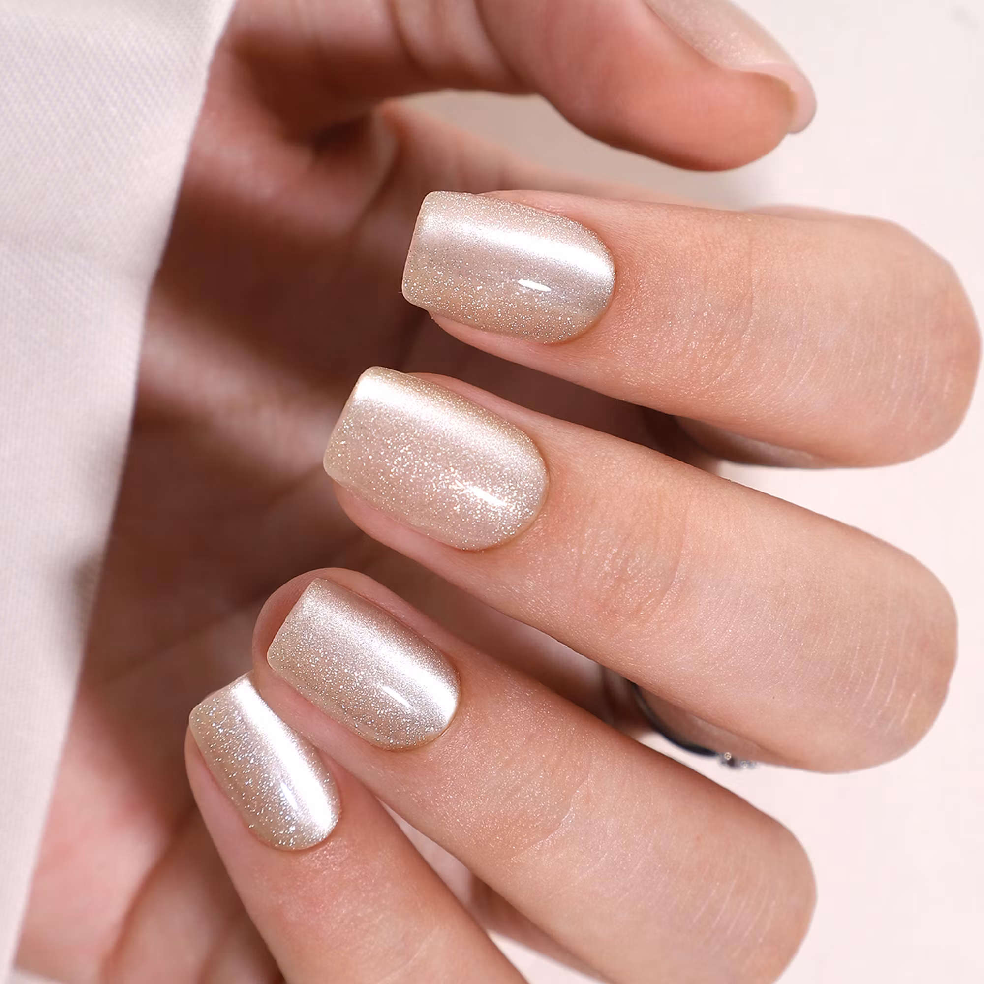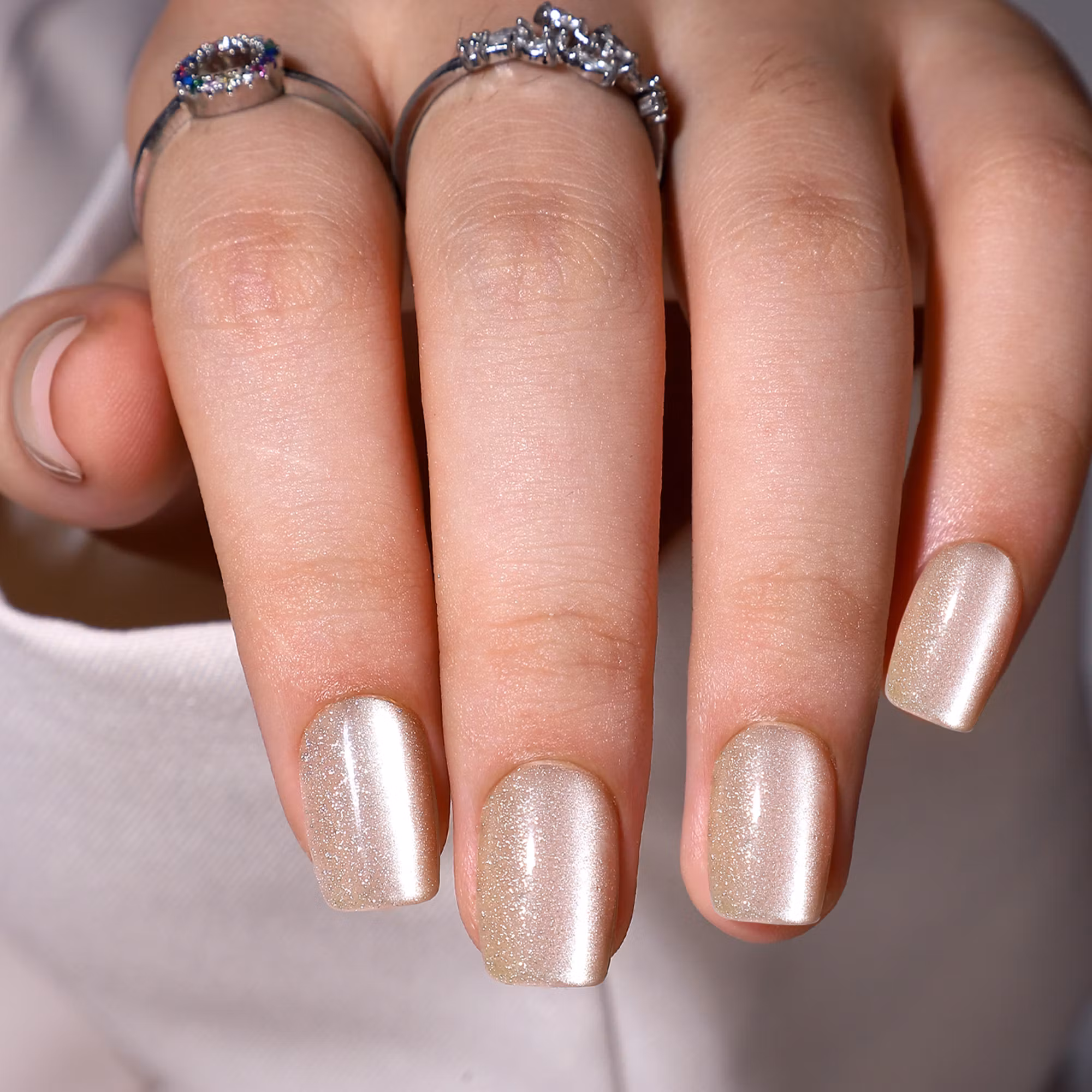 Ge dina händer en touch av sofistikerad elegans med dessa champagnefärgade press-on naglar, perfekta för både vardag och fest. Den diskreta, skimrande effekten ger naglarna ett lyxigt utseende utan att överdriva.