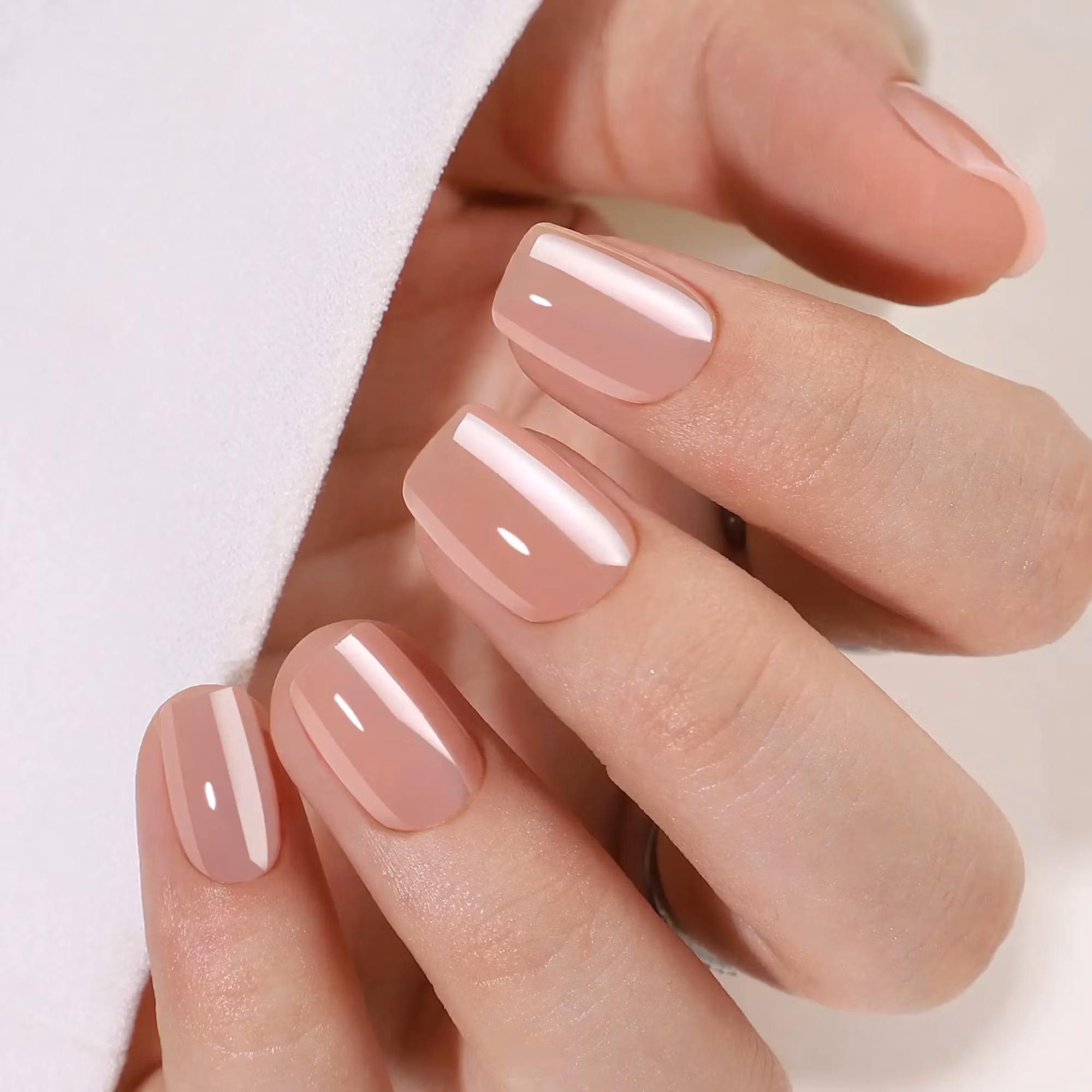 Dessa lösnaglar i en mjuk, nude-rosa nyans med en glansig, "glazed" finish är som en perfekt dag i stadens hjärta, där enkelhet möter stil. Square designen ger en trendig och strukturerad känsla, idealisk för att ta dig från morgonmöten till kvällens afterwork med en självsäker elegans.