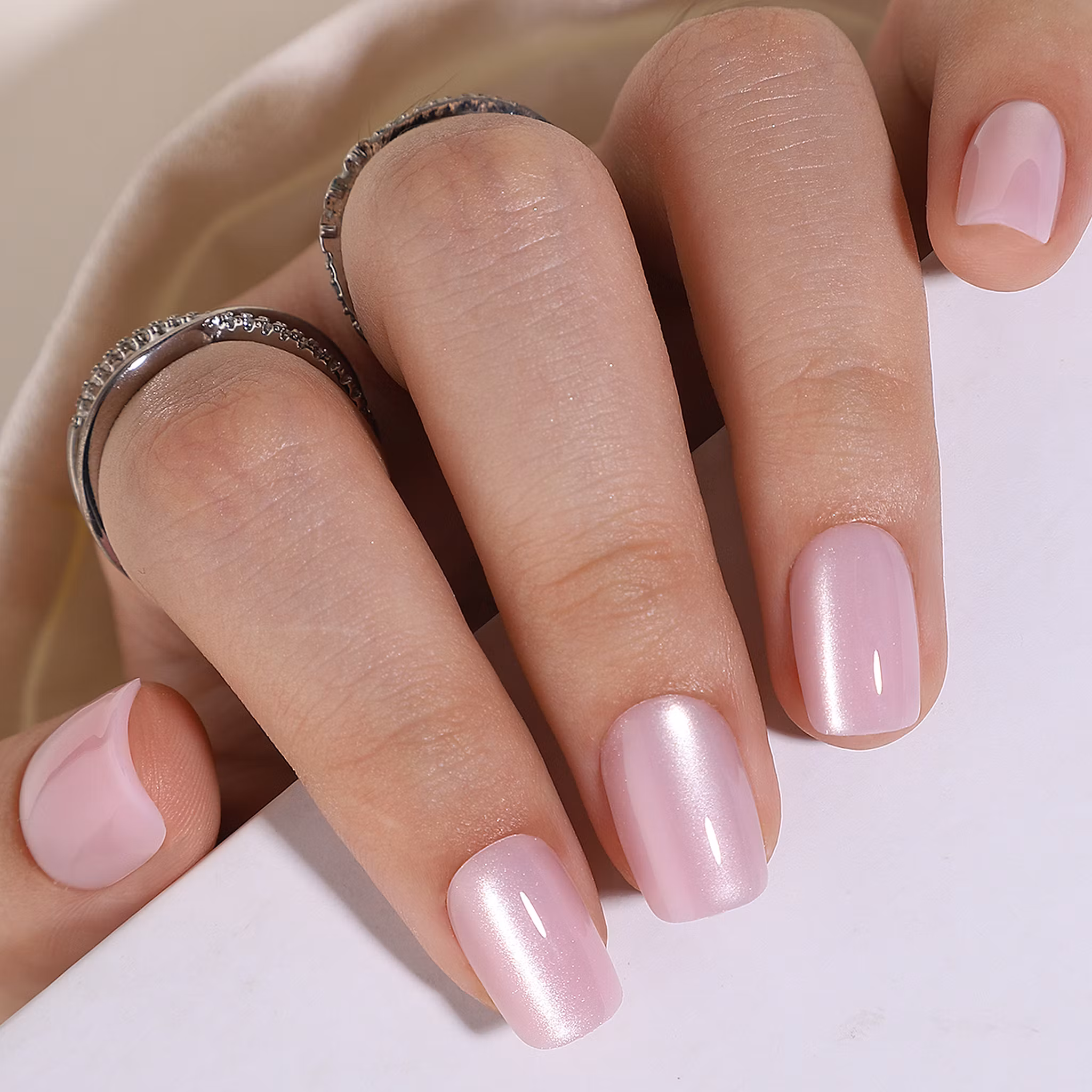 Ge din look en stilren touch med ljusrosa skimrande square press-on naglar. Perfekta för alla tillfällen, de ger dina händer ett polerat och sofistikerat utseende på bara några minuter. Långvariga och enkla att applicera, idealiska för både vardag och speciella tillfällen.